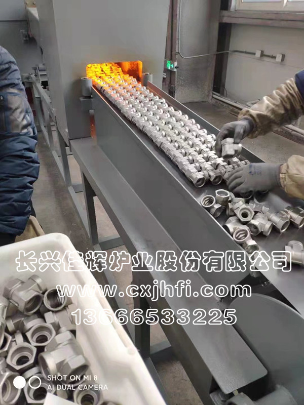不銹鋼球閥體(閥殼)光亮退火爐 此設(shè)備可根據(jù)用戶要求進行定制、定做,服務(wù)熱線:13666533225 RST型不銹鋼球閥體(閥殼)光亮退火爐,適用于不銹鋼球閥體(閥殼)及其他不銹鋼管件、拉伸件、零部件等在可控氣氛(氫氮混合氣體)保護下,進行光亮固溶、去應(yīng)力退火、消磁等熱處理工藝的專用設(shè)備。 金屬及奧氏體產(chǎn)品在彎曲、拉伸、鍛壓、切削、鑄造、焊接等加工 不銹鋼產(chǎn)品退火溫度:950~1080℃,在此溫度下為防止產(chǎn)品與空氣接觸產(chǎn)生氧化(變黑),我公司采用氫氮混合氣體進行保護,保證產(chǎn)品進爐前和出爐后的顏色及光澤度一致。 產(chǎn)品退火處理后,表面光亮無氧化,內(nèi)應(yīng)力消除,便于后期的繼續(xù)拉伸或成品出貨。本設(shè)備取代傳統(tǒng)的退火處理(傳統(tǒng)的高頻退火處理后,產(chǎn)品表面氧化成黑色,需進行后序的酸洗處理,污染環(huán)境),本生產(chǎn)線大大提高了生產(chǎn)效率,降低勞動強度及成本,改善工人的勞動環(huán)境,達到高效、節(jié)能、環(huán)保的要求。 該生產(chǎn)線具有控制先進、節(jié)能顯著、維修方便等特點,工件輸送采用耐高溫金屬鋼帶或網(wǎng)帶變頻調(diào)速,全線加熱區(qū)均采用PID自動多區(qū)控溫。
