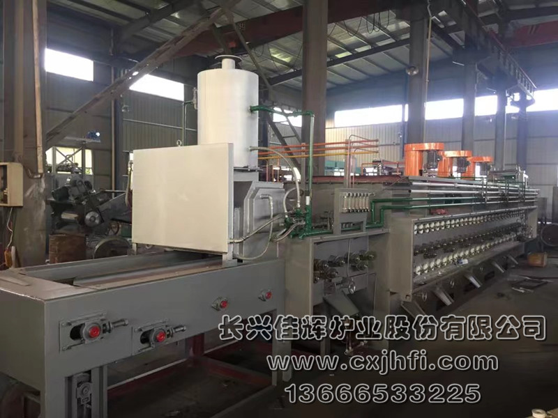 無馬弗托輥式網帶爐熱處理生產線 此設備可根據用戶要求進行定制、定做,服務熱線:13666533225 1.本熱處理生產線采用臺灣爐型、技術、標準制造、檢驗,關鍵部品采用進口產品,國內組裝,整體質量達到進口同等水平。 2.廣泛適用于各種標準件、緊固件、軸承鏈條工具、齒輪及其他小型金屬零件在氣氛保護狀態下進行批量淬火、調質、滲碳等熱處理。 生產線特長: 1.我公司擁有一支經驗豐富的設計隊伍。我公司所銷售的產品可控氣氛及保護氣氛熱處理爐占98%,人機界面計算機控制占81%。能耗均低于GB/T17358規定的工藝電能耗標準。 2.本設備結構先進,采用全套進口技術、標準制造、檢驗,整體質量達到進口同等水平,選用國內外優質材料和元器件而制造的托輥網帶式連續熱處理爐。 3.本設備適用于各種中小型金屬零件的批量熱處理生產,自動化程度高,勞動強度低,生產效率高。 4.設備機械性能穩定,故障率低,操作簡便。 5.現場工作環境清潔、無污染,符合綠色環保產品要求。 6.淬火爐采用直噴式燒嘴輻射管加熱、回火爐采用直噴式燒嘴加熱。 7.淬、回火爐網帶運行采用托輥同步傳動,使網帶運行時承受Z小張力,提高使用壽命;網帶運行連續均勻,與間斷進給的傳動相比消除了網帶返退缺陷和工件經過落料口因時間不同而引起的硬度不均勻的現象。 8.淬火爐前端增設預熱室,節省能量消耗;整機功率配備較低,熱能利用效率高,節能環保是本公司設備的特點。 9.淬火爐輻射管燒嘴為德國LBE公司技術的產品,點火電極、點火控制器、燃氣電磁閥、空氣電磁閥等均為進口技術產品,使用可靠、穩定。 10.生產線具備完整的電氣自動控制、安全聯鎖和報警功能?删幊檀鎯100多個工件的工藝程序數據,工藝參數、程序可隨時修改、增刪;整套系統按照編制好的程序全自動自動運行,在需要時也可實現手動運行;控制系統顯示屏完整顯示系統運行過程狀況,并能實現運行過程的連續記錄