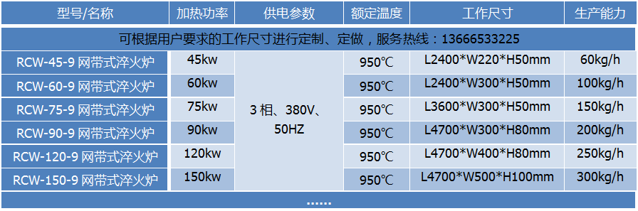 有馬弗網帶爐熱處理生產線 此設備可根據用戶要求進行定制、定做,服務熱線:13666533225 馬弗網帶爐熱處理生產線系連續式調質熱處理爐,它是利用間歇前進的網帶將工件通過溫控的加熱區,然后落入淬火油槽,并由提升機自動取出的產品進行清洗再到回火爐的連續式調質熱處理。它能在可控氣氛下進行淬火,薄層滲碳、碳氮共滲等熱處理工藝。在熱處理的過程中,工件相互間無碰撞,均衡的通過爐膛加熱,加上可控氣氛的作用下,阻止空氣進入爐內。因此,處理后的工件表面光潔、無脫碳、表面均勻、變形小、質量高。該設備具有自動化程度高,參數易于調節,勞動強度低,不污染環境,節約能源等優點。 該設備由網帶式淬火爐,噴淋式清洗機、網帶式回火爐組成自動化流水線。并可加配發黑發藍、上油、烘干生產線。 主要用于批量性的中小型機械零件(如標準件、軸承、傳動鏈、自攻螺釘、紡織五金、手工具、彈簧、彈墊、汽車零部件等)。可為用戶進行熱處理工藝調試,工件熱處理小試提供條件。